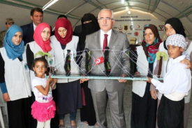 Suriyeliler, Şanlıurfa’da mültecilerin bulunduğu kampı ziyaret eden Vali Güngör Azim Tuna’ya, 15 Temmuz darbe girişiminin sembolü olan Boğaz Kö...