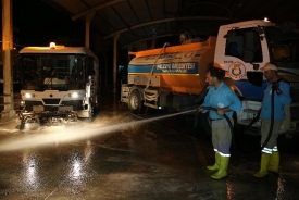 Haliliye Belediyesi, Kurban Bayramı dolayısıyla belirlenen kesim yerlerinin hijyenini sağlamak amacıyla ilaçlı suyla temizlik çalışması yapıp d...