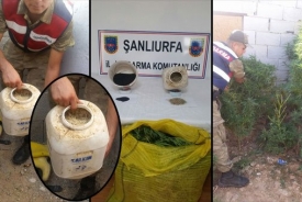 Şanlıurfa’nın Akçakale ilçesine bağlı Yazlıca Mahallesinde Jandarma tarafından bir şahsın evine yapılan operasyonda Kubar Esrar ve Bonzai ele g...